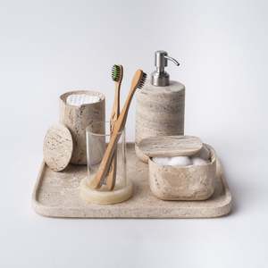 Maker: AndJacob Beautiful tray carved by hand in travertine marble. Functional for a bathroom vanity or anywhere else to place and match AndJacob's variety of items. 11.8 l x 9.8 w x 0.8 h