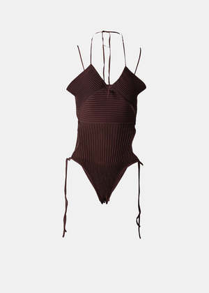 Viscose halterneck top in brown with lace-up fastening at back. Halterneck construction Adjustable lace-up at side 100% Viscose. Made in Italy.