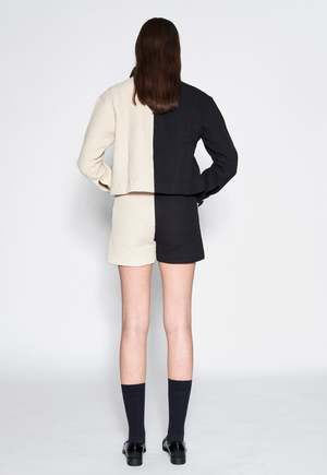two-tone cropped jacket with two chest pockets, vintage buttons, and closure on the cuffs. made in Barcelona. COMPOSITION 100% cotton MEASUREMENTS true to size