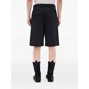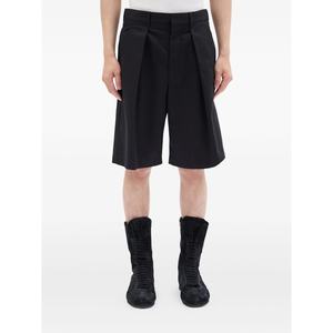 Men > Clothing > Pants > Shorts Black cotton shorts with pleats, belt loops, and back pockets.