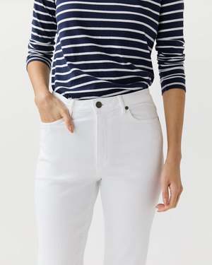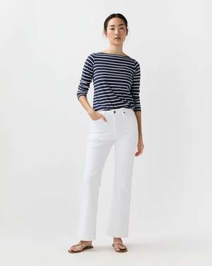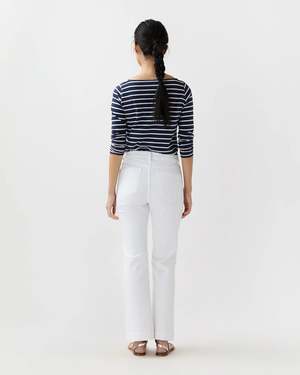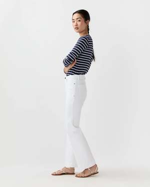 The Kendall has a slightly higher rise, with a touch more room through the thigh and a subtle flare at the ankle. If you haven't found your perfect white jean yet, you should take these for a spin. - Cone Mills stretch denim: 88% cotton / 10% polyester / 2% lycra - Antique brass tack button - 5-pocket style | zip fly | mid rise | flared leg - 29" inseam on size 27 - Made in the USA