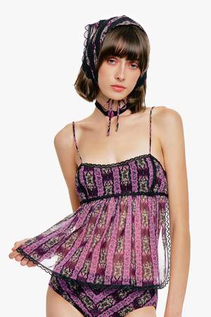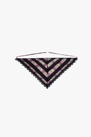 Please kindly note this item is for pre-order and will be available to ship by the end of January. RESORT 2026 PRODUCT DETAILS The Cameo Stripe Print Headscarf alternates a soft printed chiffon with a pretty floral black lace to create an edgy, feminine style. The bandana shape drapes nicely over any hairstyle and is great for all occasions. - Color: Orchid - Fabric: 100% Polyester - Care: Hydrocarbon dry clean only - Made with love in NYC - Style #1126A91 SIZE AND FIT - US size O/S shown in picture