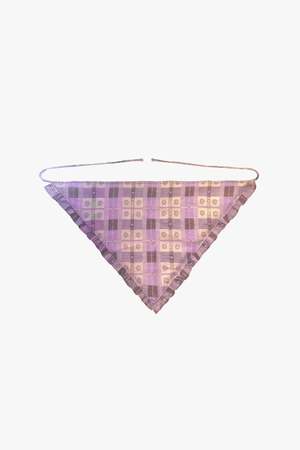 Add a charming finishing touch with the Anna Sui Plaid Blossom Bandana. Crafted from 100% cotton, this versatile accessory features a classic triangle shape for easy, effortless styling. Perfect worn around the neck, tied in the hair, or paired with the matching Plaid Blossom Apron Top for a coordinated look, it adds a playful, signature Anna Sui accent to any outfit. - Color: Lavender - Fabric: 100% Cotton - Hydrocarbon dry clean only - Made with love in NYC - Style #326D90 SIZE AND FIT - US size O/S shown in picture.
