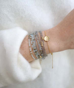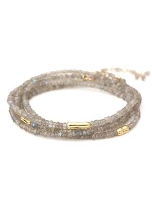 This handmade labradorite bracelet by Anne Sportun can be worn as a bracelet or necklace. It features 18k yellow gold and is 34" in length with a gold clasp, hex bead and tied extension. About the artist: Seeking a medium for her creativity, Toronto-born artist Anne Sportun began making jewellery as a teenager. She deferred her archeological studies to enroll in a jewellery arts programme where she acquired her formal goldsmithing skills. Anne founded her brand with the opening of her first atelier in the late 1980s. This was the beginning of a prolific career which continues to evolve.