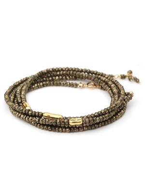 This handmade pyrite bracelet by Anne Sportun can be worn as a bracelet or necklace. It features 18k yellow gold and is 36" in length with a gold clasp, hex bead and tied extension. About the artist: Seeking a medium for her creativity, Toronto-born artist Anne Sportun began making jewellery as a teenager. She deferred her archeological studies to enroll in a jewellery arts programme where she acquired her formal goldsmithing skills. Anne founded her brand with the opening of her first atelier in the late 1980s. This was the beginning of a prolific career which continues to evolve.