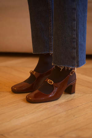 Fit true size. Please select your normal size Deep eggplant super soft Lambskin nappa, varnished & crumpled From the best Italian tanneries Goat leather lining, chestnut-brown Leather sole Handmade in Aveiro district, Portugal Heel 5,5 cm