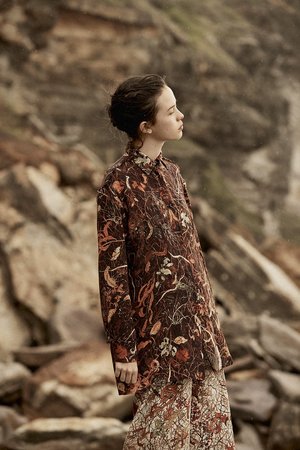 A loose-fit oversized shirt in a luxurious silk-wool blend for softness and warmth, available in the 'autumn' or 'winter' print, inspired by Icelandic wildflowers. Armholes, shoulder seams, cuffs and yolk are lined with hand-fringed silk detailing. 57% silk / 43% wool. designed and made with love in sydney. styled here with the winter silk pants these garments are made in small production runs in order to minimise waste. if your size is unavailable, please get in touch to join a waiting list.