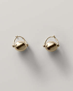 A minimalist ellipse featuring a delicate spinning design and hinge closure, inspired by the Scandinavian Modernist style of hinges and connections on jewelry. Measurements: L 0.75 / 2CM Material: Recycled 925 sterling silver (92.5% silver and 7.5% copper), the strongest alloy of silver that balances beauty with durability.