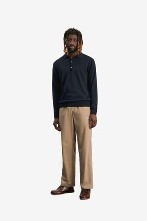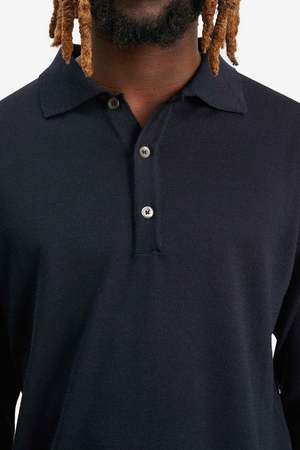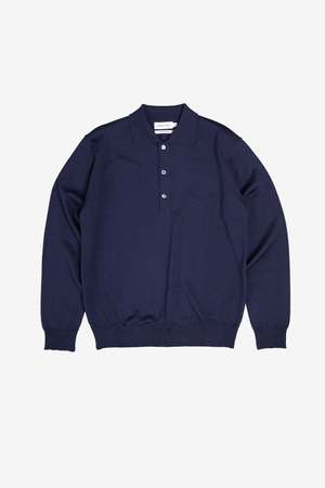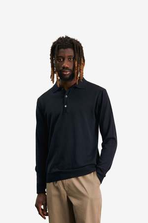A lightly knitted long-sleeved polo shirt that we genuinely love. Works all year-round worn on its own with a pair of trousers or under a coat in colder times. Knitted in Italy in soft, organic merino wool with mother-of-pearl buttons. Composition: 100% Organic Merino Wool Made in Italy.