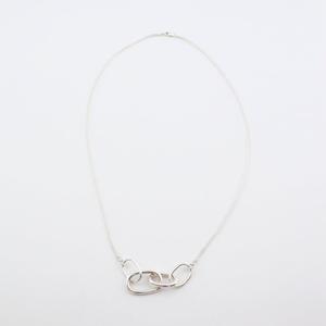 Varying sized hand formed sterling silver chain links on a double strand oxidized silver chain. Hits mid chest.