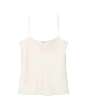 The Silk Camisole in Off White by Another Tomorrow is a spaghetti strap camisole top crafted in a bias cut, double-lined, lightweight silk. - 100% Peace Silk, from the naturally discarded cocoons of fully grown silk moths. - No closure, slips on.