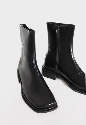 Minimalist boots with square toe and zipper closure. Easy to pair with any outfit. COMPOSITION 100% vegan leather MEASUREMENTS True to size.