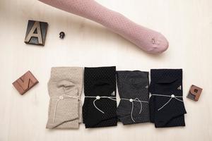 Made in Japan. 70% wool, 30% nylon - same weight as the socks we all know and love. Available in: - Charcoal with beige dots (3rd from the left). - Beige with charcoal dots.