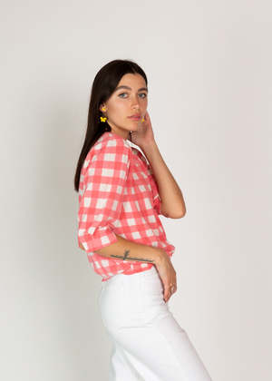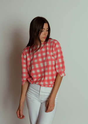 Antipast's Check Cotton Pullover features a crew neck, three quarter length sleeves and a bright pink check. Details: - Pullover crewneck. - Three quarter sleeves. - Delicate knit. - Hand wash cold. Hang dry. Dry clean. - Made in Japan. Color pink check. 100% cotton.