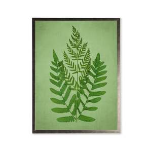 This print, framed in a silver wooden frame, features an elaborate fern against a green background. Sized at 16 inches by 20 inches, this made in the USA frame makes for a beautiful addition to any wall. Made in USA Made with real wood Hangs from back-mounted hardware Encased in glass