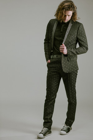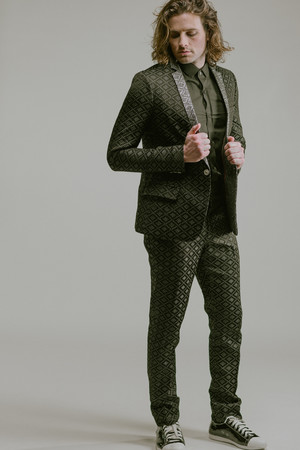 Silver metallic detailed suit, one of a kind Jacket 40, trousers 32