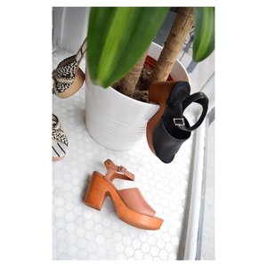 Leather platform sandal with buckle closure. Leather lining and memory foam cushioned insole. 1" wooden platform with a 3.5 heel, rubber outsole. Imported. Fits true to size