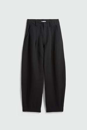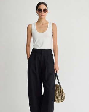 The Bari Crop Trouser is a versatile, modern pant designed with a flattering high waist and a cool cropped barrel leg. Front pleats and slant pockets add tailored structure, while the soft linencotton blend keeps the look effortless and breathable. An easy staple youll reach for again and again. Details: High-waisted silhouette Cropped barrel leg Hook and bar closure Front pleats Slant side pockets Fabric: 60% Linen, 40% Organic Cotton Front rise (size 4): 10" Inseam: 27" standard | 24" petite Fits true to size. Care: Dry clean recommended, or machine wash cold on gentle cycle and lay flat to air dry.