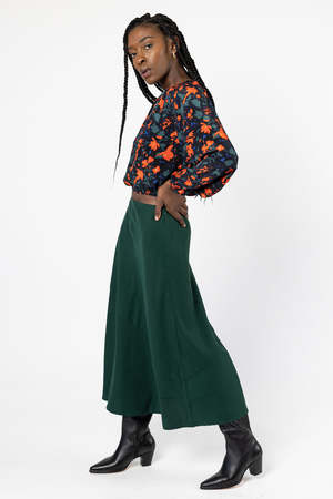Draping gracefully in an evergreen forest hue, the Ami Slip Skirt from Apiece Apart is our fall and winter go-to. The flattering tea length and high waist makes it easy to pair with sweaters and blouses alike, while the elegant color, diagonal seam detail and breathable lyocell makes it the perfect dressed-up or cool casual piece. Title tag Apiece Apart - Ami Slip Skirt in studio green Sizing - True to size - Model is 5' 9" and wearing 4 - Need more help? Check out our Find Your Fit guide here. Details - A-line skirt - Bias cut skirt - Zipper at left side seam - Soft flare at the hem - Studio green - 100% tencel - Imported - Dry clean only