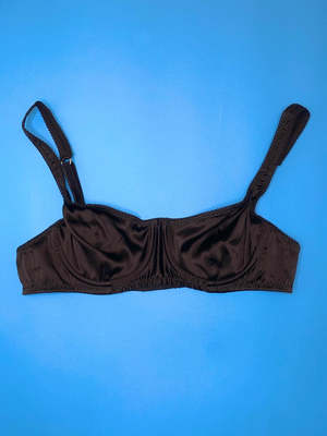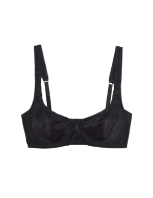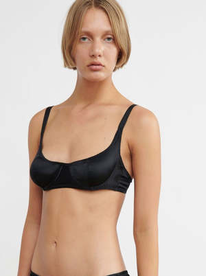 A retro-inspired classic balconette silhouette which feature supportive cups, wide-set adjustable straps and hook and eye closure. Looks just as great on an A cup as a D cup. Shiny silky charmeuse. - 92% Silk, 8% Elastane - Made in USA - Match with the Grier Silk Thong