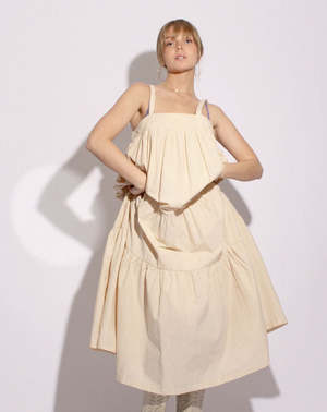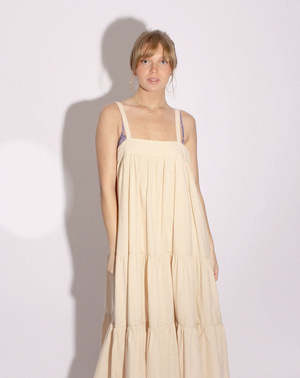 The Araminta James Sunset Dress in Sand is an easy to wear midi that can be dressed up or down for an effortless look. Crafted from 100% cotton poplin fabric, this dress features a flattering neckline, and a drop tier design with a flowy feel. The easy silhouette makes this piece light and breezy, perfect for those warmer days. Pair with sandals for a casual look, or your favourite mules to transition into night. FIT GUIDE: - 100% cotton poplin - Lightweight - Cut for a relaxed design