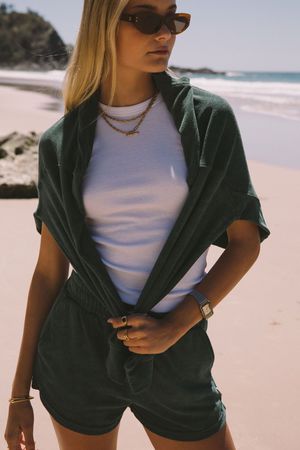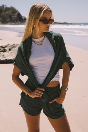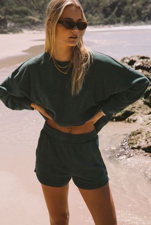 By Araminta James ISO essential, the terry towelling sweatshirt. A retro inspired silhouette featuring, batwing sleeves, drop shoulder, and self bands. Wear yours lounging around the house or running errands. FIT GUIDE: - 100% Cotton - Terry towelling fabric - Cut for a relaxed fit - Model is wearing size 8/S SIZE GUIDE: Size 6- Length 56.5cm, 1/2 Chest 71cm, Sleeve length 47cm Size 8 - Length 57.5cm, 1/2 Chest 73cm, Sleeve length 48cm Size 10 - Length 58.5cm, 1/2 Chest 75cm, Sleeve length 49cm Size 12 - Length 59.5cm, 1/2 Chest 77cm, Sleeve length 50cm
