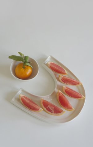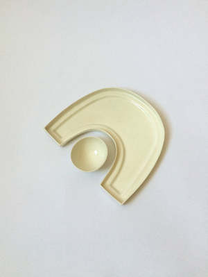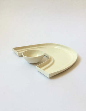 inspired by lunar eclipses and the way things (literal and figurative) orbit each other perfect as a serving platter set for dinner parties, for enjoying favorite snacks, or simply as a decorative adornment at home bowl measures approximately 3 diameter x 1.5h and 3.75d x 2h. plate measures approximately 9" across x 1.5"h x 12.5" l hand-wash recommended