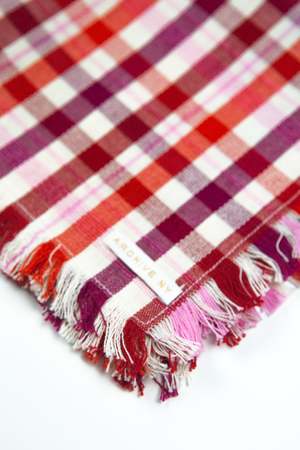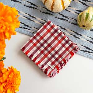 The Noel plaid party napkin is the perfect accent to add color and texture to any table setting. The party napkin is smaller in size than our dinner napkin and has a fringe around the edges. Stripes of red currant, cranberry and light pink are woven together to create this both seasonal and timeless piece. Ethically handwoven by artisans in Xela, Guatemala. Sold as a set of 4.