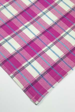 Pink and ivory gingham plaid placemats, ethically handwoven by artisans in Chiapas, Mexico on traditional footlooms. With hints of soft blue and navy, this updated classic plaid will be a lively addition to any table setting or dinner party.