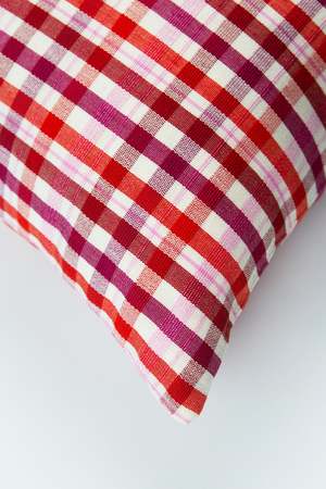 The Noel plaid pillow is the perfect accent to add color and texture to any sofa, bedroom, or accent chair. Stripes of red currant, cranberry, and light pink are woven together to create this seasonal and timeless piece. Ethically handwoven by artisans in Xela, Guatemala. Also available in 20"x20" square pillow size. Archive NY is a woman-owned brand and creative agency dedicated to preserving traditional artisan weaving and dyeing techniques at risk of disappearing. Founded in Brooklyn in 2014 and now based in Los Angeles, they collaborate with skilled artisans across Guatemala, Mexico, and India to ensure these timeless crafts continue to thrive.