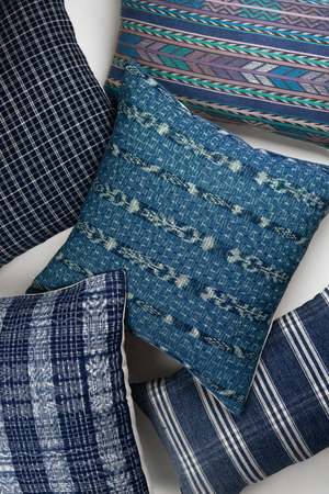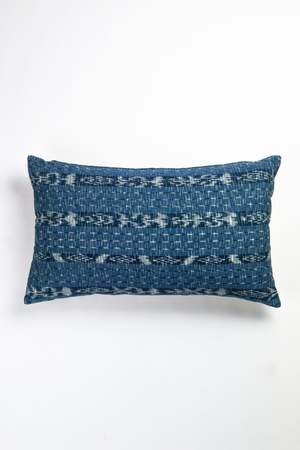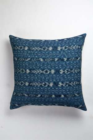 These pillows feature an intricate Guatemalan resist tie dye technique called jasp (also known as Ikat). With dark indigo, medium blue, and touches of green and white, they are a perfect accent to any sofa or accent chair. Handwoven by artisans in Totonicapan, Guatemala, where some of the best jasp (Ikat) dyers in the country continue the tradition. Spot clean or dry clean only. 100% cotton. Side zipper. Available in sizes 12" x 20" and 20" x 20".