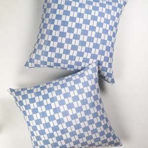 Colors: Soft Blue Grey / White 20" x 20" 100% Cotton Cover | Down Alternative Insert Made in Guatemala