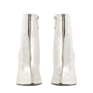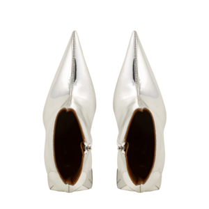 Founded in 2014 by designers Beckett Fogg and Piotrek Pansczczyk in downtown New York City, AREA is a womenswear and accessories design studio specializing in quality craftsmanship, textile development and innovative embellishment, since its launch, AREA has generated a cult following with their modern and timeless take on beauty and glamour. "A" logo2 silver patent leather pointed toe pumps. 105mm heels. Material: Leather Made in Italy