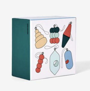 Pat Kims wooden ornaments are small, colorful forms adapted from larger scale designs found in his work. Keeping different arrangements of them around his studio, they often act as inspiration for new design ideas. This set of six ornaments is a fun reflection of Kim's broader studio practice, which focuses on material experimentation and traditional craft. Hang them here or there for festive decor, or as objects of celebration in your own space.