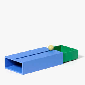 This minimalist and colourful storage box artfully hides away a myriad of things, from loose change to love notes. Insert small items through the slot on top or slide open the drawer with its knob to tuck them away. It's useful in the kitchen, bathroom, or on your desktopand so aesthetically pleasing, it's a cache you won't want to clear. Designed by Kenyon Yeh. - MDF, wood and hardware - 4.8 x 9.5 x 3.2 in - Keep in a cool, dry place - To clean, wipe with a soft, damp cloth and dry thoroughly Areaware collaborates with independent designers to create pieces that bring a touch of delight and charm into your home. Some of their designers are well-known and established in the industry, while others are up-and-coming, bringing diversity and a fresh perspective to the world of design. Type: Homeware