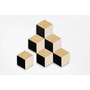 This set of six coasters can be artfully arranged to form a tiled trivet. The illusion of 3D through color and geometry allows for endless permutations, encouraging playful mosaic building on your table. Ideal as a housewarming gift for those with discerning taste or as decoration for your own intimate gatherings. Material: MDF, Beech Veneer, Cork Dimensions: 3.5 x 3.25 x 0.25 in Type: For Home