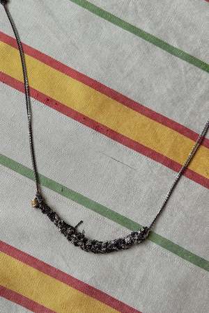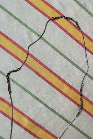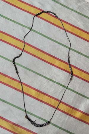 Lightweight and classic pullover necklace in iris and ash. Ionized stainless steel. Features two delicate chains with four shorter blended segments complimenting the predominant base colour. Measurements: 30" in circumference. Material: Ionized stainless steel. Made in Canada.