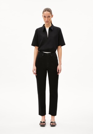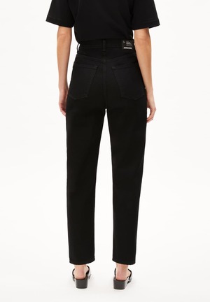 The newly improved MAIRAA mom jeans feature a fitted waist and a slightly tapered leg with an ankle-length cut. Crafted from a premium blend of recycled cotton and TENCEL x REFIBRA Lyocell with a touch of stretch, they provide comfortable freedom of movement while adding a timeless touch to any outfit. - Closure type: Button & zipper - Pockets: 5-Pocket - Production site: Saray Tekirdag, Turkey - Manufacturer: SUGLOBAL TEKSTIL KONFEKSIYON SAN.A. Material: - Main Fabric: 79% Cotton (recycled), 17% Lyocell (TENCEL x REFIBRA), 3% Elastomultiester, 1% Elastane (recycled) - Trimming: metal buttons - Material info: Heavy weight denim - Fabric Description: Comfort-Stretch Size & Body measurement in cm: Jeans Waist Hips 25 64 90 26 66.5 92.5 27 69 95 28 71.5 97.5 29 74 100 30 76.5 102.5 31 79 105 32 82 108 33 85 111 34 88 114 PETA approved vegan. This product does not contain any animal components and is certified with the logo2 of the animal rights organization PETA to make vegan shopping easier. Washing & care instructions: - 30 mild fine wash - Do not bleach - Drying in the dryer not possible - No dry cleaning possible - Iron moderately hot.