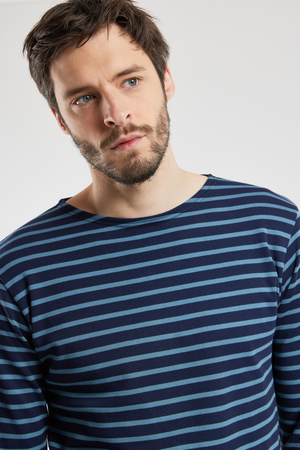 Men's Breton striped shirt Long sleeves Boat neck Tailored fit Interlock fabric Signature Armor Lux knit Heritage Collection 100% cotton