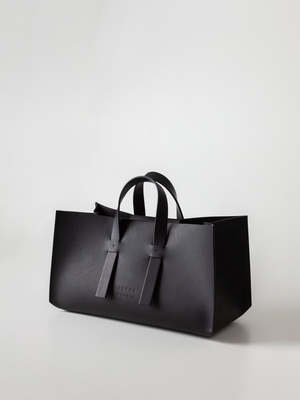 Expertly crafted from structured, vegetable-tanned leather, the DoppioCubo Mini Handbag offers a timeless addition to any wardrobe. The thick leather maintains its shape, while a clip fastener secures your belongings. With an unlined interior, this long rectangular handbag allows for customizable organization. It comes with a crossbody leather strap that attaches to O-rings inside. Crafted with skill by two artisans in the Arrhe Studio workshop in Fano, Italy. ABOUT ARRHE STUDIO ARRHE is a studio and craft workshop founded by Alessandro Conti and Francesca Tiberi in the historic center of Fano, Italy. Drawing on their backgrounds in fine art and architecture, ARRHE explores leathers potential through sculpture, engraving, and architectural shapes. Their products are handcrafted entirely inside their workshop using certified vegetable-tanned Vaccetta leather, known for its natural, almost untreated finish and soft, buttery feel. Made from organic materials, the products are plastic-free and avoid metals and chemical additives. CARE The leather will naturally change and age over time due to exposure to elements such as sun and water, developing a beautiful patina. Store your bag in a clean area out of direct sunlight. Do not use leather cleaners or conditioners that contain lanolin. Instead, use a wax-free leather conditioner to prevent the leather from drying out. When not in use, store your leather bag in a box or cotton dust bag, not in plastic, as leather needs to breathe. COLOR Black DETAILS 100% vegetable-tanned Italian leather MEASUREMENTS Size (W x H x D): 40 x 20 x 20 cm Weight: 0.65 kg