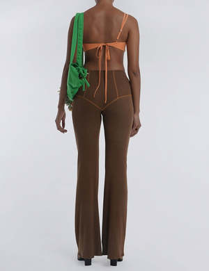 The cotton rib pants of our Y2K dreams. Ribbed, legging style pant with contrast flatlocking detail in a comfy and substantial stretch fabric. Go high style on your low key days off and pair with the Flatlock Tee. - Ribbed, legging style pant with contrast flatlocking detail. - Full length and slightly flared. - Designed for a snug fit. - 100% Cotton Rib - This garment is true to size for a snug fit - Cool machine wash. Line dry in shade. Do not soak, bleach or tumble dry. Medium to hot iron temperature. Please see the care label attached to the garment for further information. Title tag Flatlock Pant Mud | SHOP COUP DETAT DETROIT