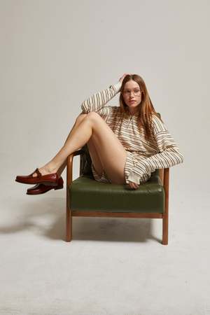 Straight out of the 70s, reimagined for now. This Cody brings vintage sport energy with a natural and chocolate stripe in plush cotton loop terry breathable, cozy, and full of retro charm. The relaxed fit and classic quarter-zip neckline make it perfect for throwing on and heading out no styling required. Pair it with the matching shorts or keep it casual with denim for off-duty style. Made in Los Angeles. True to size. 65% Cotton / 35% Polyester.