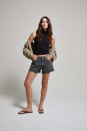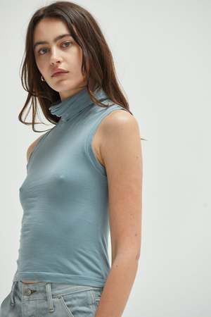 Chic, sculpting, and insanely soft the Tessa Turtleneck Tank is your new secret weapon for elevated layering. Made from Ashers signature buttery fabric that feels like a second skin, it features a sleek, fitted silhouette and a softly gathered turtleneck. Perfect worn solo with denim or tucked under a blazer for a modern, minimal look. Runs small size up if youre between sizes. Alexa wears size S. The garment is garment-dyed and enzyme-washed for an ultra-soft finish. Made in Los Angeles. Fabric: 92% Supima Cotton / 8% Spandex.