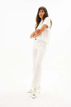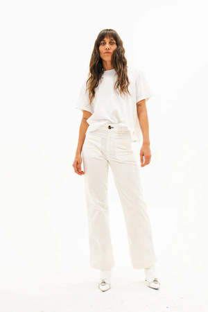 An everyday pant with vintage roots. The Sailor Pant is cut from soft stretch corduroy with a flattering high rise, wide leg, and clean front for a polished silhouette. Finished with front patch pockets and classic rear pockets, it's an easy choice for day-to-night wear with just the right amount of structure and stretch. Size Details Rise: 12" Inseam: 30" Leg Opening: 20" Model is 5'9" and wearing size 25 Materials & Care 98% cotton, 2% polyurethane 8 oz stretch 21 wale corduroy Machine wash cold Do not tumble dry Made in Los Angeles.