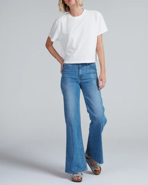 The Bailer is your go-to wide-leg jeaneasy, elongating, and made to move with you. Designed with a mid rise and a long 33" inseam, this silhouette drapes cleanly through the hip before breaking into a full, balanced flare. Cut from soft Japanese stretch denim, it offers lived-in comfort with a polished, leg-lengthening shape. Effortless with a tee, elevated with a heel, this is a modern take on a classic wide leg that works year-round. Size Details Rise: 10.5" Inseam: 33" Leg Opening: 24" Model is 5'9" and wearing size 25. Materials & Care 98% cotton / 2% polyurethane 10 oz Japanese stretch denim Machine wash cold separately Do not tumble dry Made in Los Angeles.
