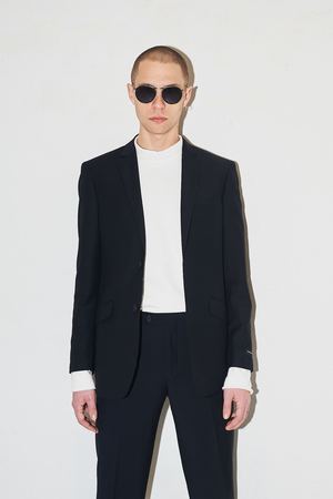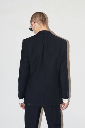 Classic navy blazer from Assembly New York. Notch lapel with a double button front closure. Fully lined with interior pocketing. Double vent backing. Removable tassel on left arm buttons. Assembly logo2 near left sleeve hem. Worn with Reverse Terry Mockneck. - 65% Polyamide / 35% Rayon - Dry clean only - Made in USA - Shown in size 38. Luke is 6' with a 29" waist.