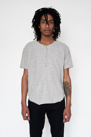 Assembly Cotton Reverse Terry Henley - Grey -Made in USA -Model wears size Medium