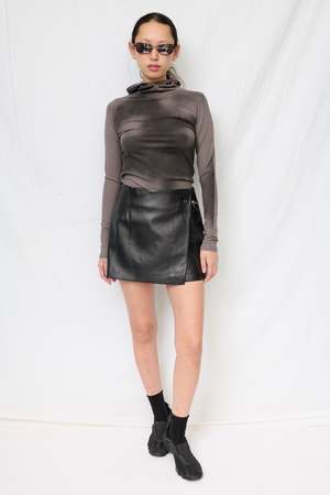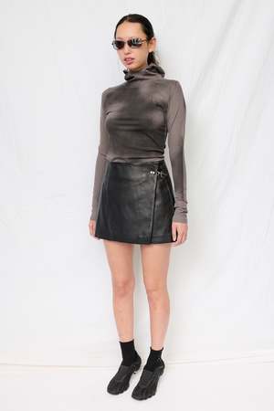 Black Sheep Nappa Mini Fireman Skirt from Assembly New York. - Exterior: 100% lamb leather - Lining: 100% viscose