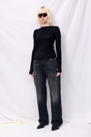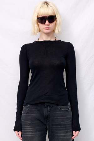 Black Silk Cashmere Long Sleeve Top from Assembly New York. Long sleeve ultra soft top with side slit and thumb hole detail. - 100% Wool - Made in USA