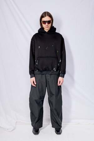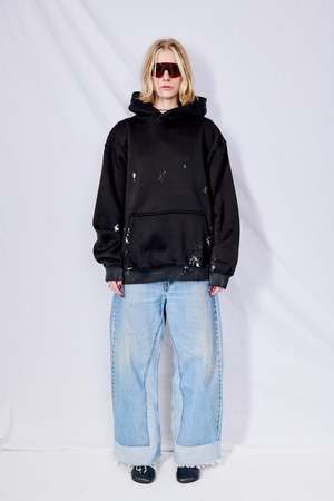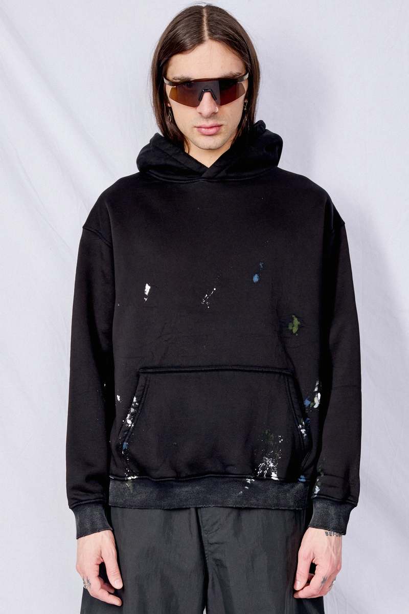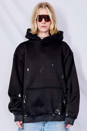 Black Painted Hoodie from Assembly New York. - 42% Cotton / 53% Polyester / 5% Other Fibers - Made in USA